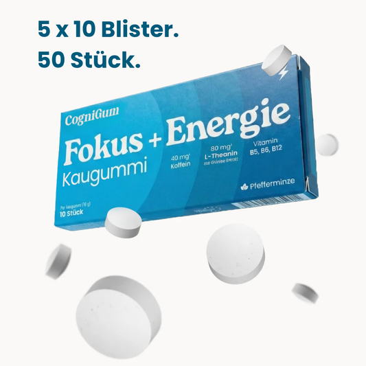 CogniGum™ setzt auf genau diesen Mechanismus. Und langfristig unterstützen B5, B6 und B12 deinen normalen Energiestoffwechsel und tragen zur Verringerung von Müdigkeit und Ermüdung bei – täglich, als Teil deiner Routine.
